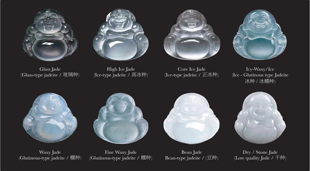 Jadeite is also classified by translucency , which strongly affects value and appearance. The main types range from opaque (low-quality jade) → highly translucent (top-quality jadeite). Here are the commonly recognized categories: